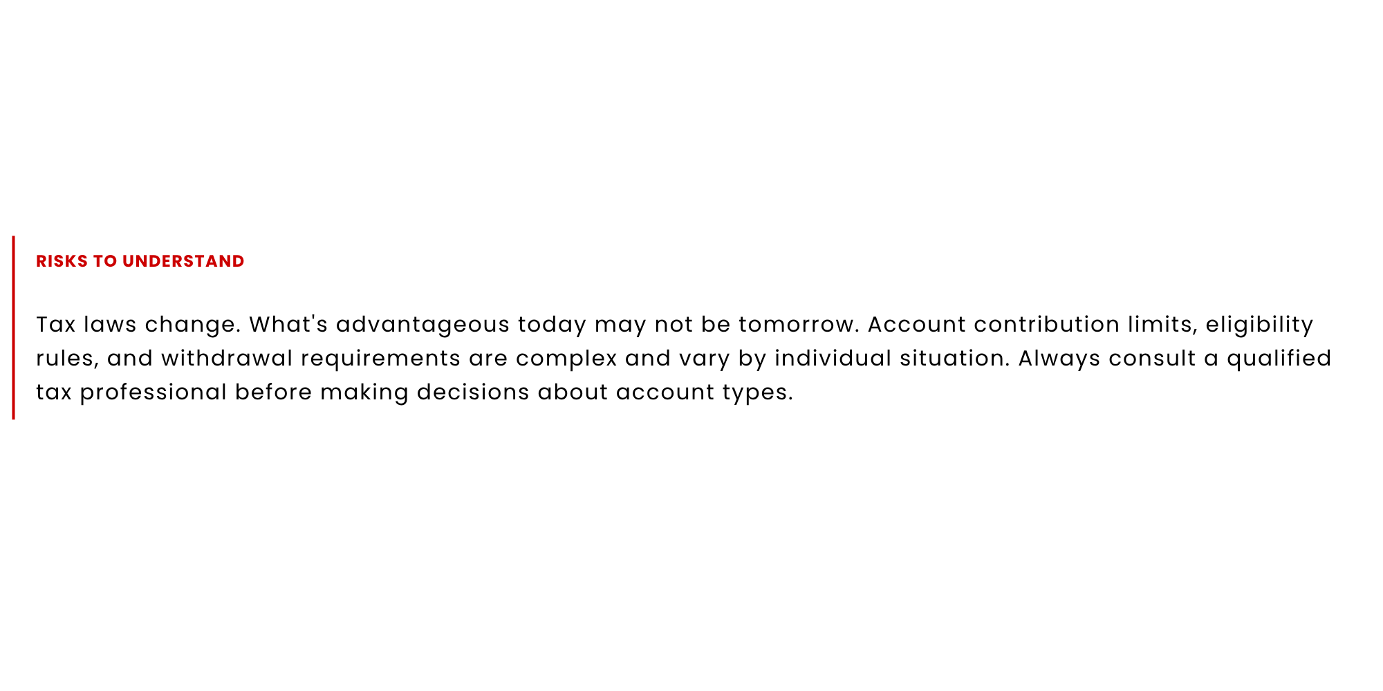 Here's one that often gets overlooked: the type of account you save in matters just as much as what you invest in. Different account types are taxed differently — and having money spread across multiple tax "buckets" can give you more flexibility when it's time to use your savings.